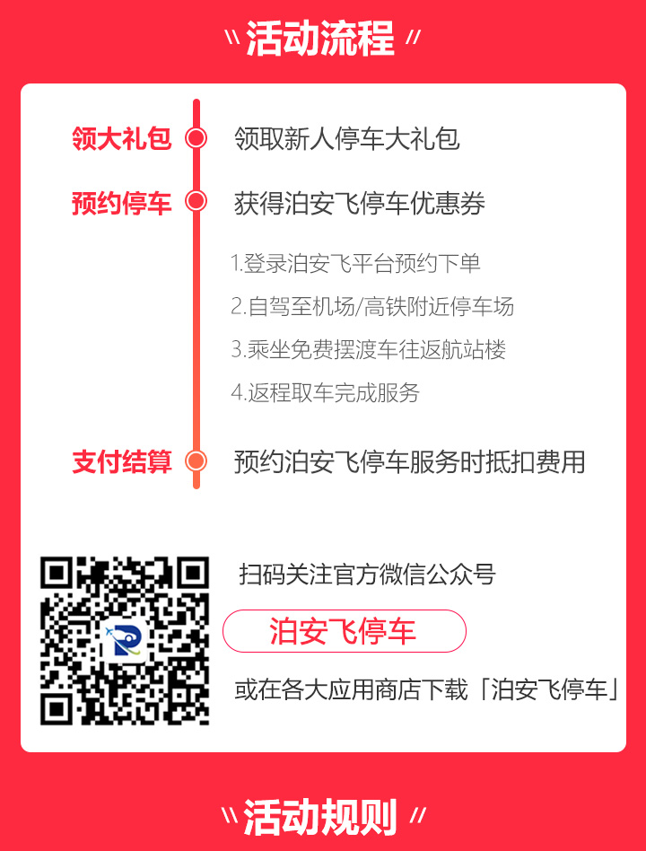 *泊安飞新人礼包领取成功后,请使用领券手机号登录泊安飞停车客户端或公众号到个人中心优惠券账户查看使用。